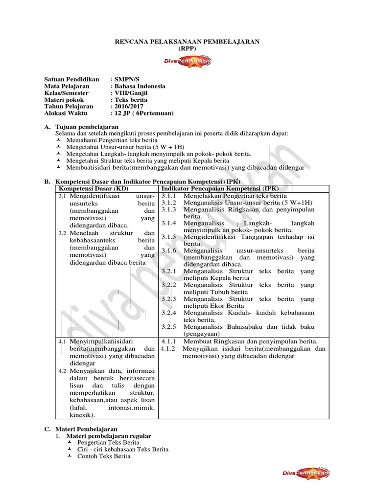 Semoga link download rpp dan silabus bahasa indonesia smp/mts gratis ini bisa membantu bapak/ibu guru dalam menyiapkan perangkat pembelajarannya. Bapak ibu guru bahasa indonesia smp/ mts seandainya bapak ibu bingung mencari rpp bahasa indonesia smp yang revisi 2017 anda bisa melihat di silabus dan mengenali cirinya dalam. Silabus k13 smp bahasa indonesia. Savesave silabus rpp bahasa indonesia smp kelas viii for later. Info lengkap ke wa 082214177280. Silabus bahasa indonesia smp/mts kelas 8 kurikulum 2013 revisi 2020 ini kami bagikan gratis untuk bapak/ibu guru yang mengajar mata pelajaran bahasa indonesia sebagai pola atau perbandingan untuk dipakai dalam menciptakan rencana pelaksanaan pembelajaran (rpp). Silabus dan rencana pelaksanaan pembelajaran (rpp) merupakan bagian dari perangkat pembelajaran yang wajib dimiliki guru. Jika bapak dan ibu guru menemukan kekurangan pada silabus maupun rpp berkarakter diatas, silahkan berikan pendapat ibu di form. Silabus bahasa indonesia smp/mts kelas 8 kurikulum 2013 revisi 2020 ini kami bagikan gratis untuk bapak/ibu guru yang mengajar mata pelajaran bahasa indonesia sebagai pola atau perbandingan untuk dipakai dalam menciptakan rencana pelaksanaan pembelajaran (rpp). Kunci jawaban soal bahasa indonesia kelas 8. Matapelajaran :bahasaindonesia kelas/semester :viii/2 standarkompetensi :11 memahami ragam wacana tulis dengan membaca intensif,membacaintensif,danmembacanyaring kompetensidasar. Teks4 rpp bahasaku bi smp 2kompetensi dasarmateripokok/pembelajarankegiatan pembelajaranindikatorpenilaianalokasiwaktusumber. Silabus mata pelajaran bahasa indonesia kelas 8 kurikulum 2013